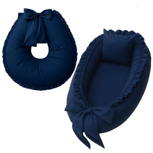 1. Ninho redutor de berço e Almofada de Amamentação Percal 100% Algodão (Marinho)